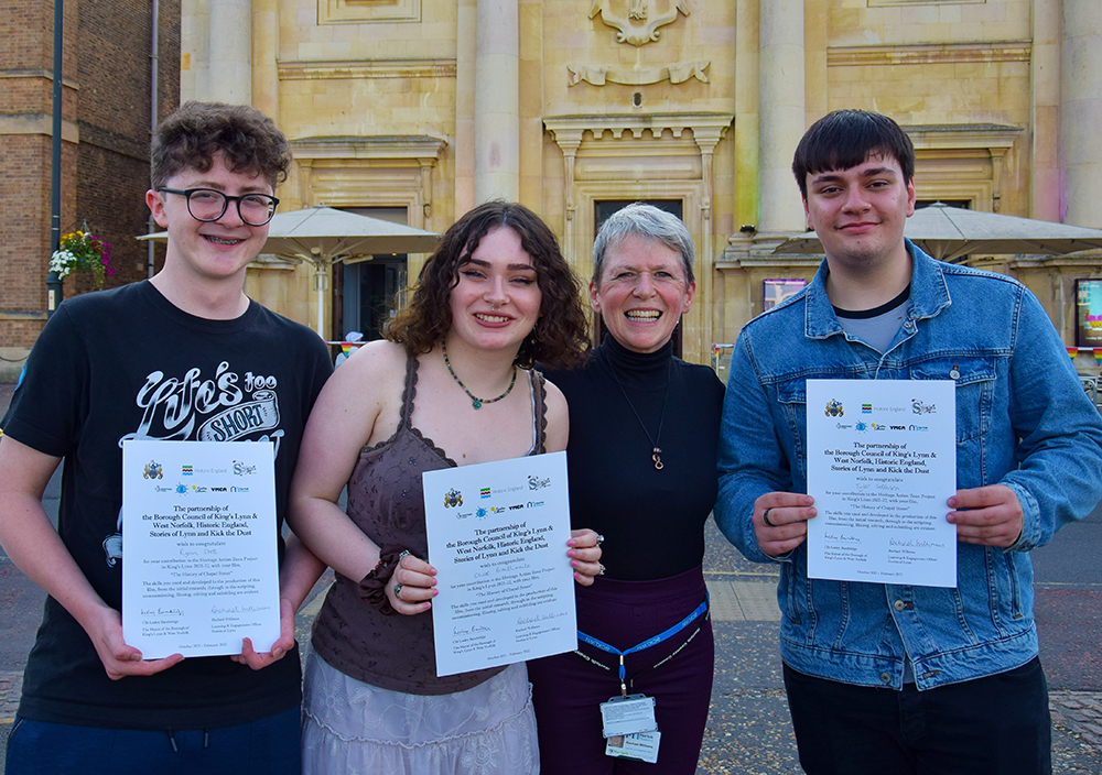 Students from the College of West Anglia co-produced Building on the Past, a short film telling the story of King’s Lynn’s Chapel Street. They were chosen to be part of the film crew, as part of the National Lottery Heritage Fund’s ‘Kick the Dust’ work experience group. They led the project, interviewing former local residents, briefing actors, choosing images and making the final edits, gaining a range of new professional skills in the process. Watch the Chapel Street film.