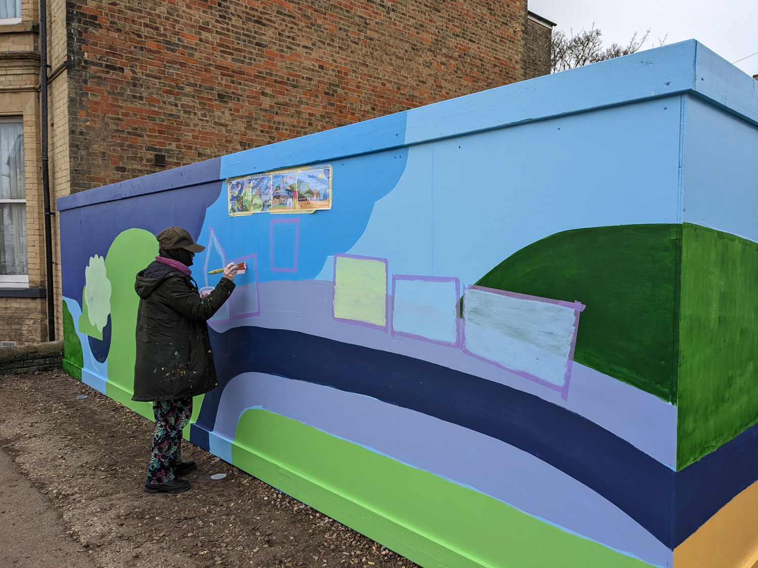 East Suffolk Council and Kirkley Pocket Park Group worked together on an artist brief for the mural, with the theme of ‘What Kirkley Means to Me’. Artist Catalina Carvajal was awarded the commission.