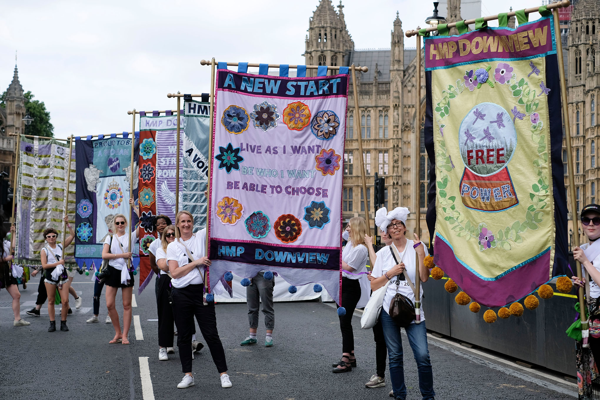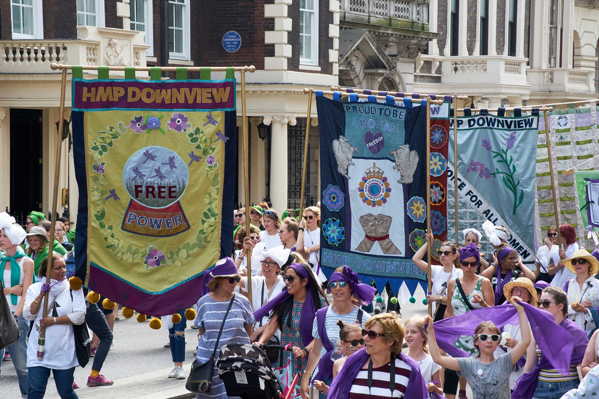 Historic England took part in Processions, a nationwide artwork which invited families, communities and organisations to create a banner reflecting on life as a woman in modern Britain. Working with the London College of Fashion and their 'Making for Change' programme, a group of former Holloway inmates collaborated with artist Lucy Orta to create a banner. This featured with the others in processions in four UK cities on 10 June.