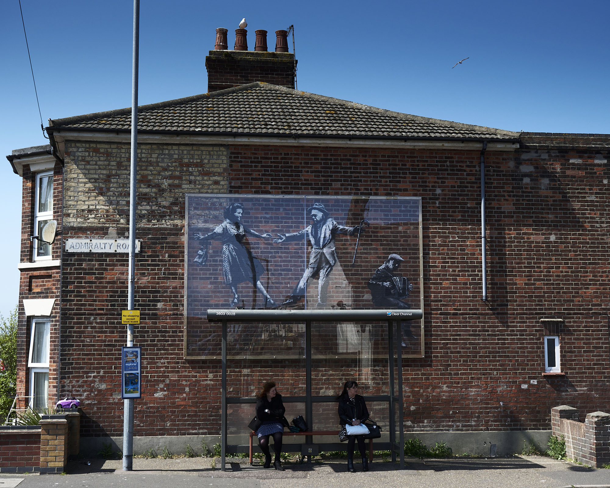 These photographs were exhibited in different spaces and formats across England, including panels in Bristol, Derby, Norwich, Bradford and Walsall, window vinyls in Middlesbrough, Hastings, Prescot and Stoke-on-Trent, projections outside The Photographers' Gallery in London, and on Clear Channel UK advertising space across England.
