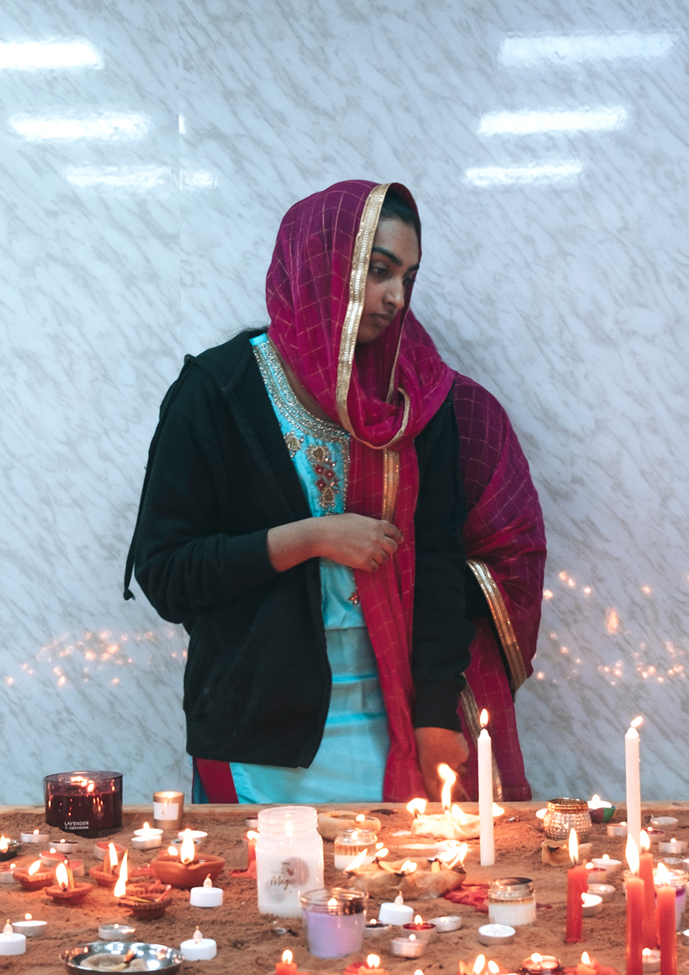 In dancing with churchgoers at the close of a thanksgiving service; being one of many voices singing Delilah in the wake of a football win; observing a moment of quiet reflection over Diwali candles and in pausing to listen between bell rings, here Natalie found and captured moments of reflection, expressions of faith and celebrations of community.