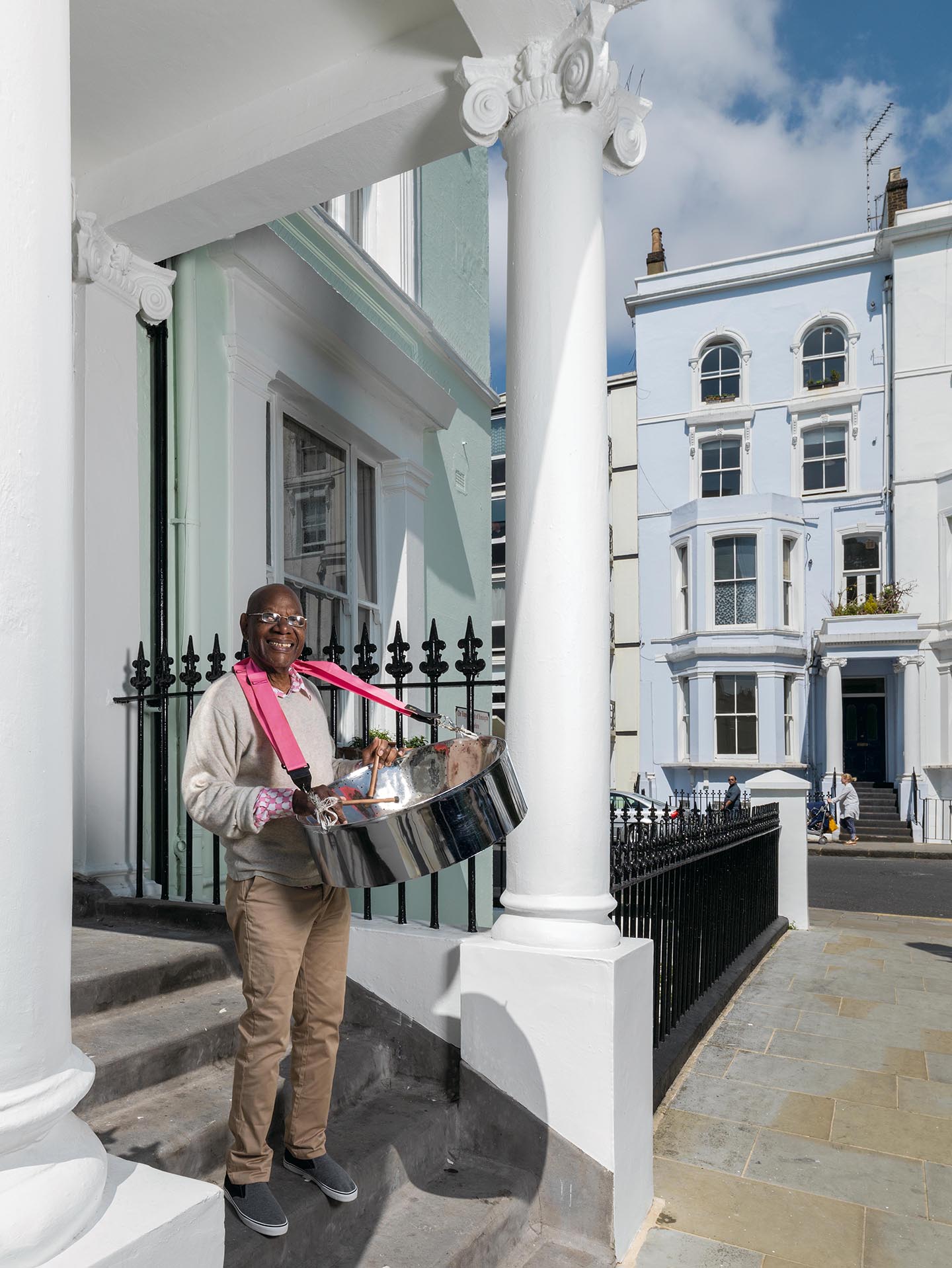 - Sterling Betancourt, Musician, photographed at Powis Square Notting Hill. Sterling was born in Trinidad and came to London for the Festival of Britain in 1951 as part of the Trinidad All-Steel Percussion Orchestra. He stayed and sowed the seeds for the first Notting Hill Carnival, when he played a small gig to soothe tensions following the 1964 race riots.