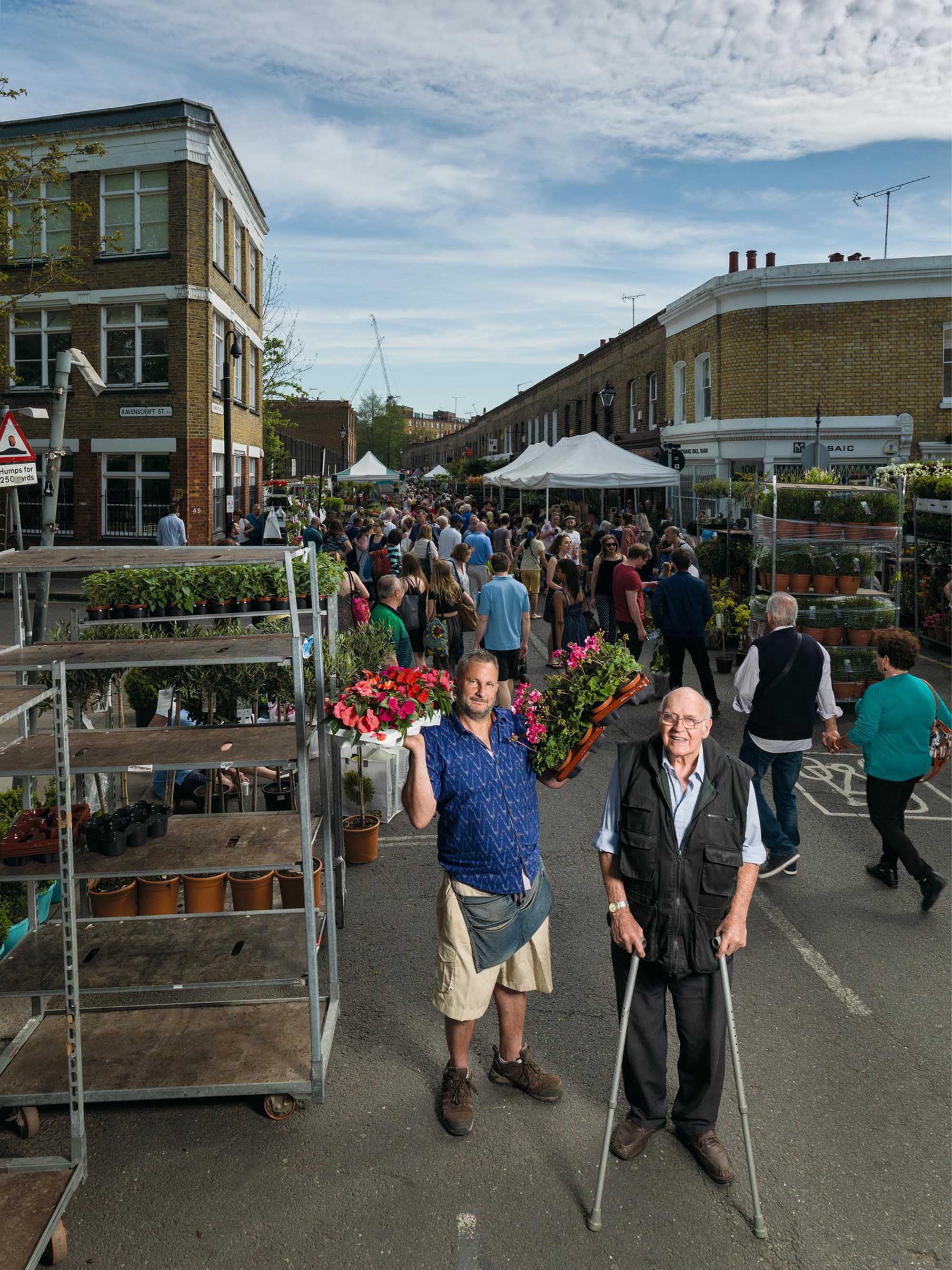 - George Gladwell photographed at Columbia Road Flower Market, Bethnal Green. George has been selling plants at Columbia Road since 1949, longer than anyone else at the market.