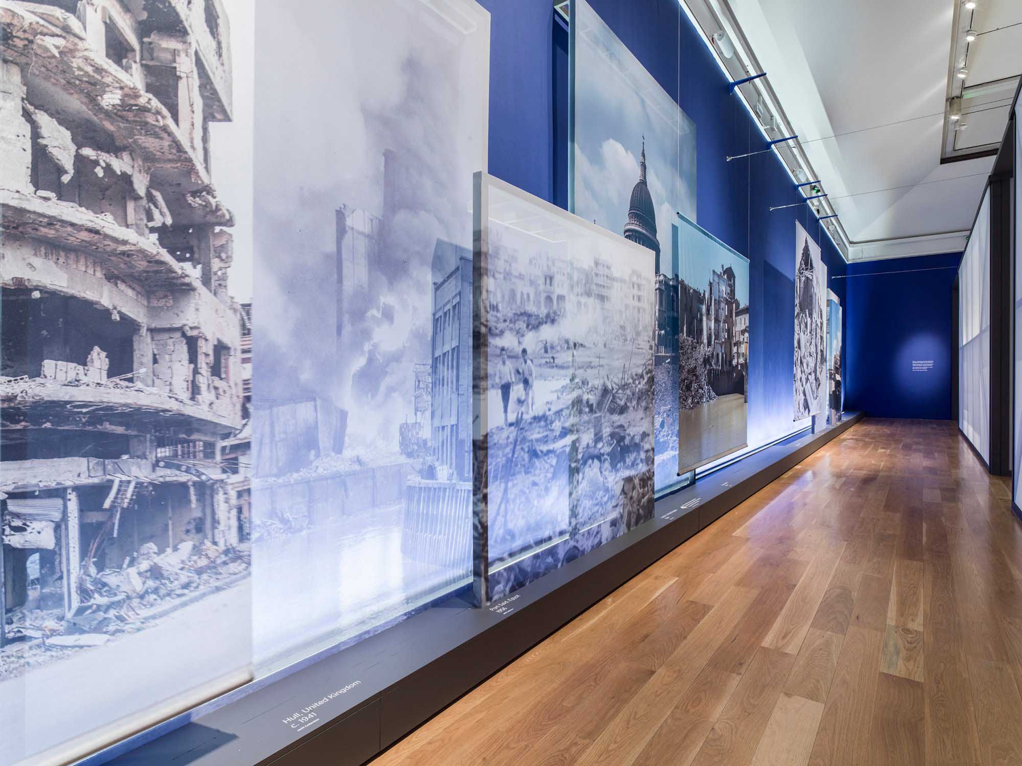 Spanning 100 years, the exhibition included stories such as Hitler's Baedeker Raids in 1942 where German bombers targeted historic towns and cities noted in travel guides of Britain, and the Taliban destruction of the Bamyan Buddhas in 2001.