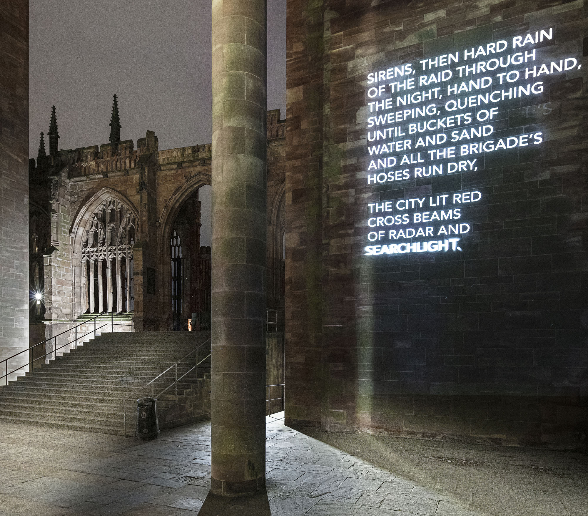 Historic England worked with the Poetry Society and leading creatives Double Take Projections to project powerful poetry, visuals and photography to tell the story of the people who risked their lives to try and save the city’s medieval cathedral during the Blitz.