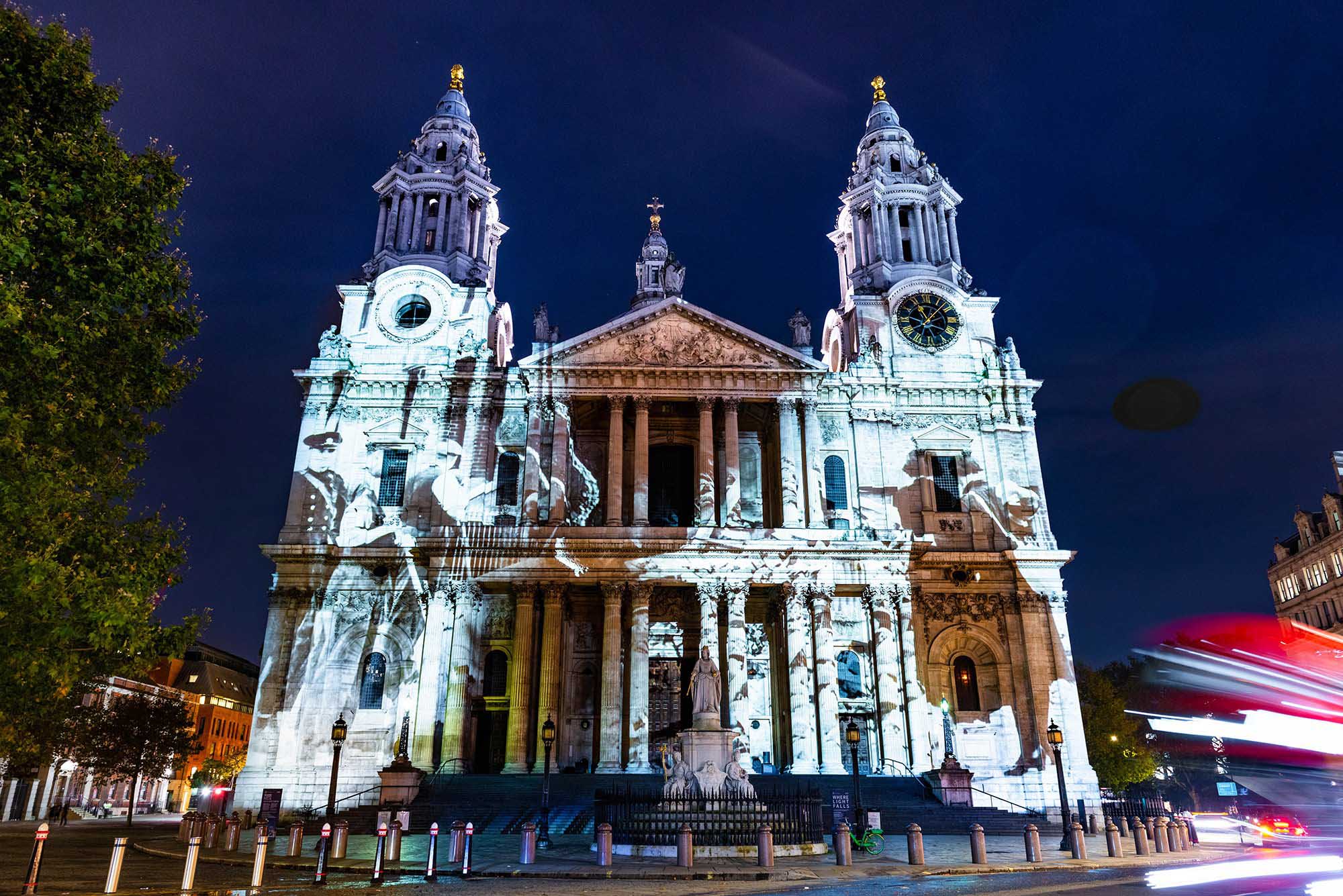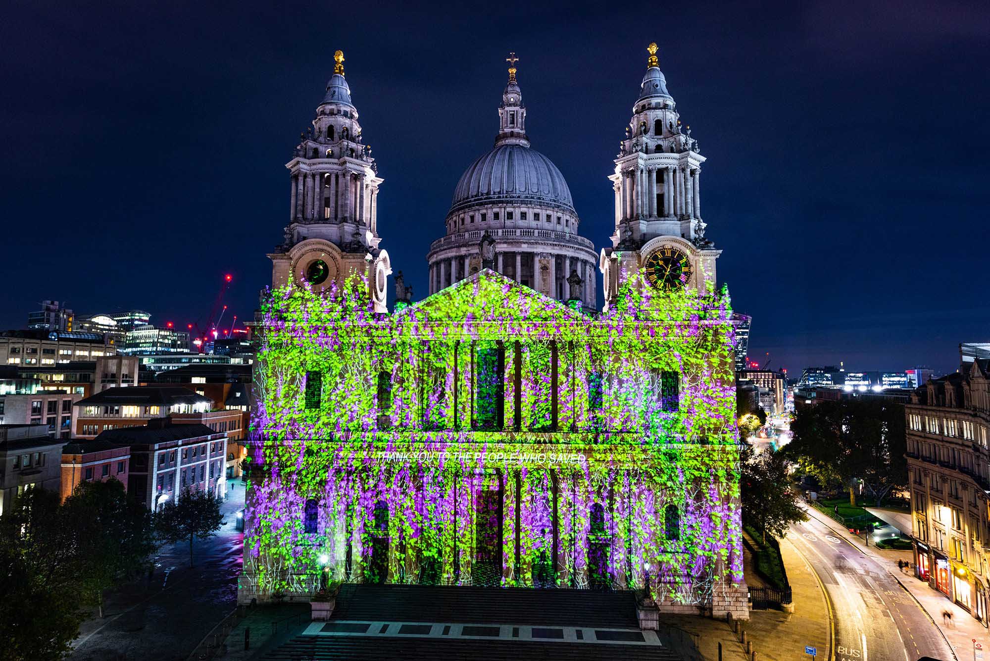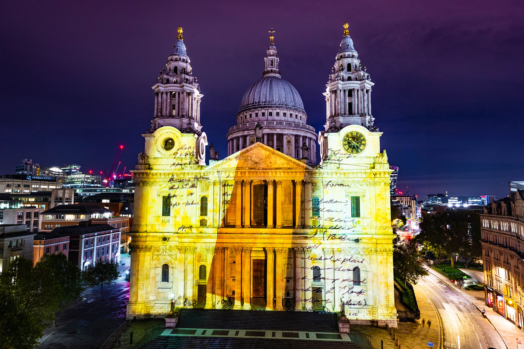 Double Take Projections used the poem together with their own research as inspiration to create a spectacular light show on the exterior of St Paul’s.
