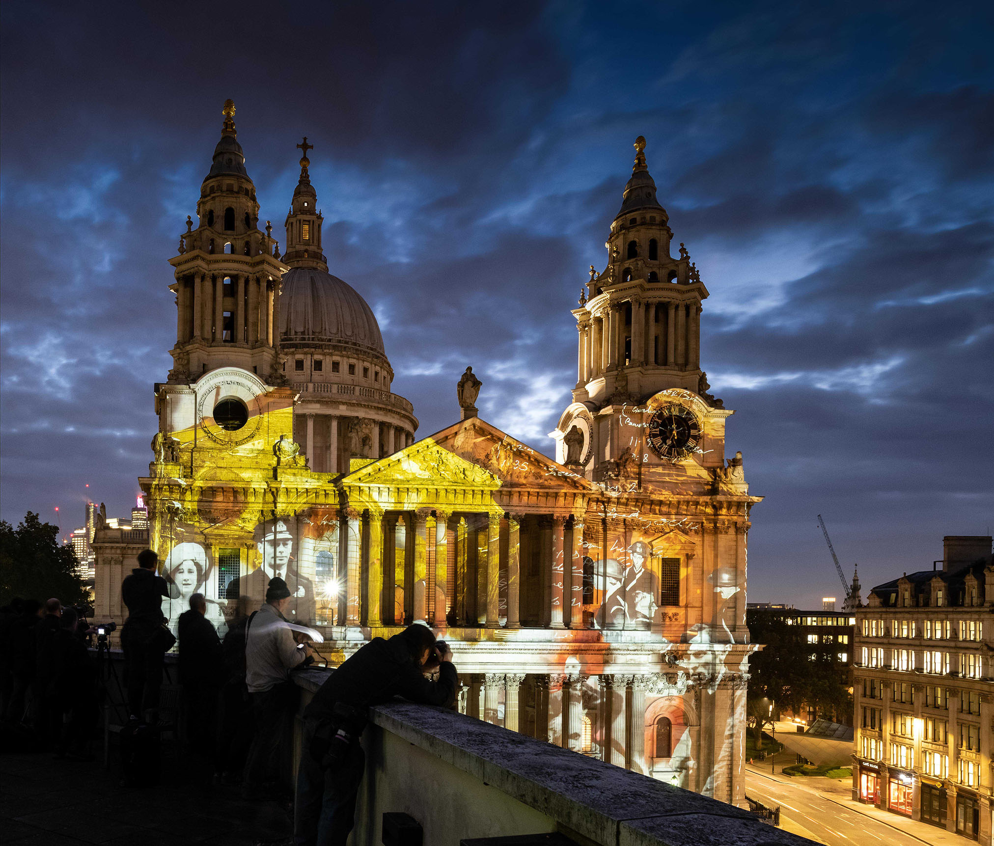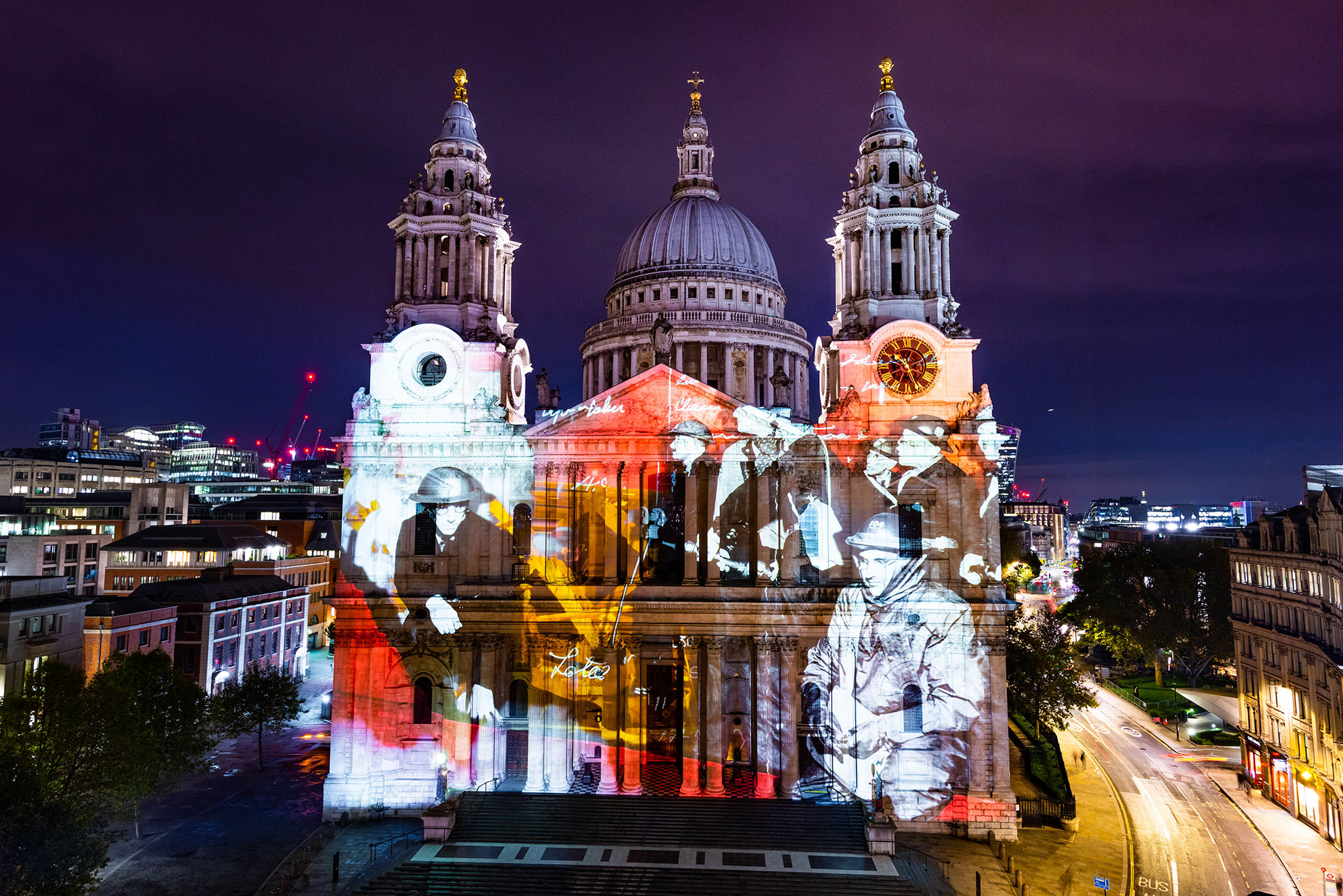 Where Light Falls took place at St Paul’s Cathedral Thursday 24 October–Sunday 27 October 2019. Historic England worked with the Poetry Society and leading creatives Double Take Projections to project powerful poetry, visuals and photography to tell the fascinating story of the St Paul's Watch, volunteers who risked their lives to protect the cathedral during the Blitz.