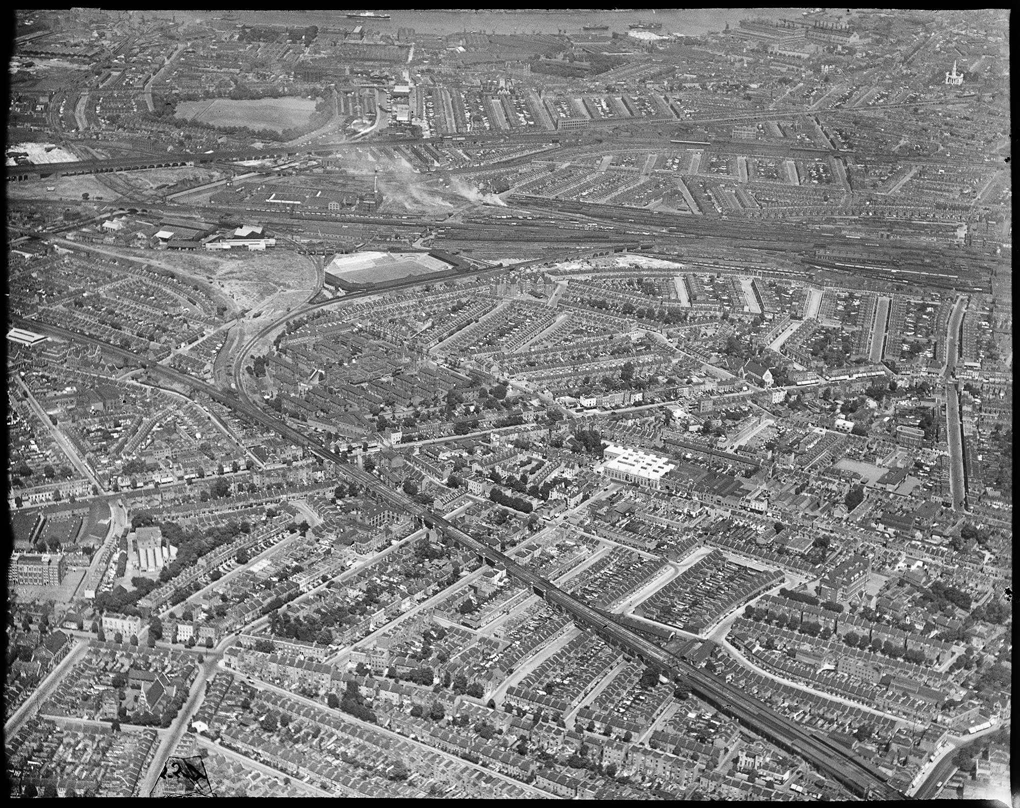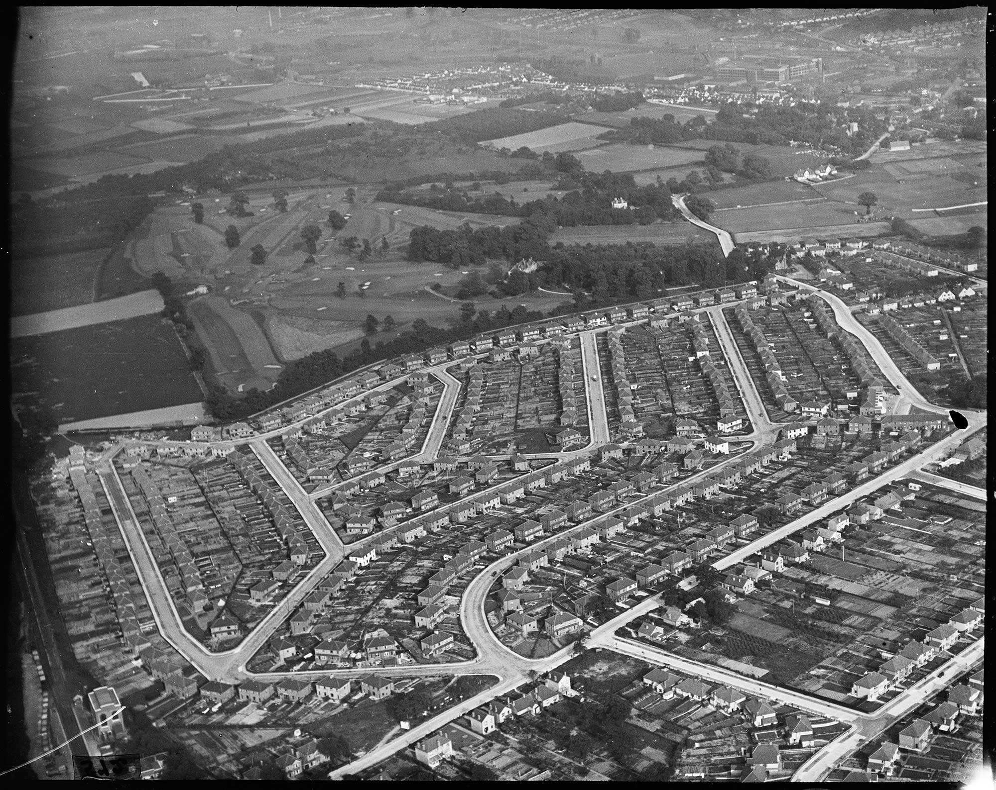 The recording of new construction schemes, from housing estates to transport infrastructure was a common subject for early aerial photographers. Often, construction firms would commission progress photography to keep a visual record of their work from commencement to completion.