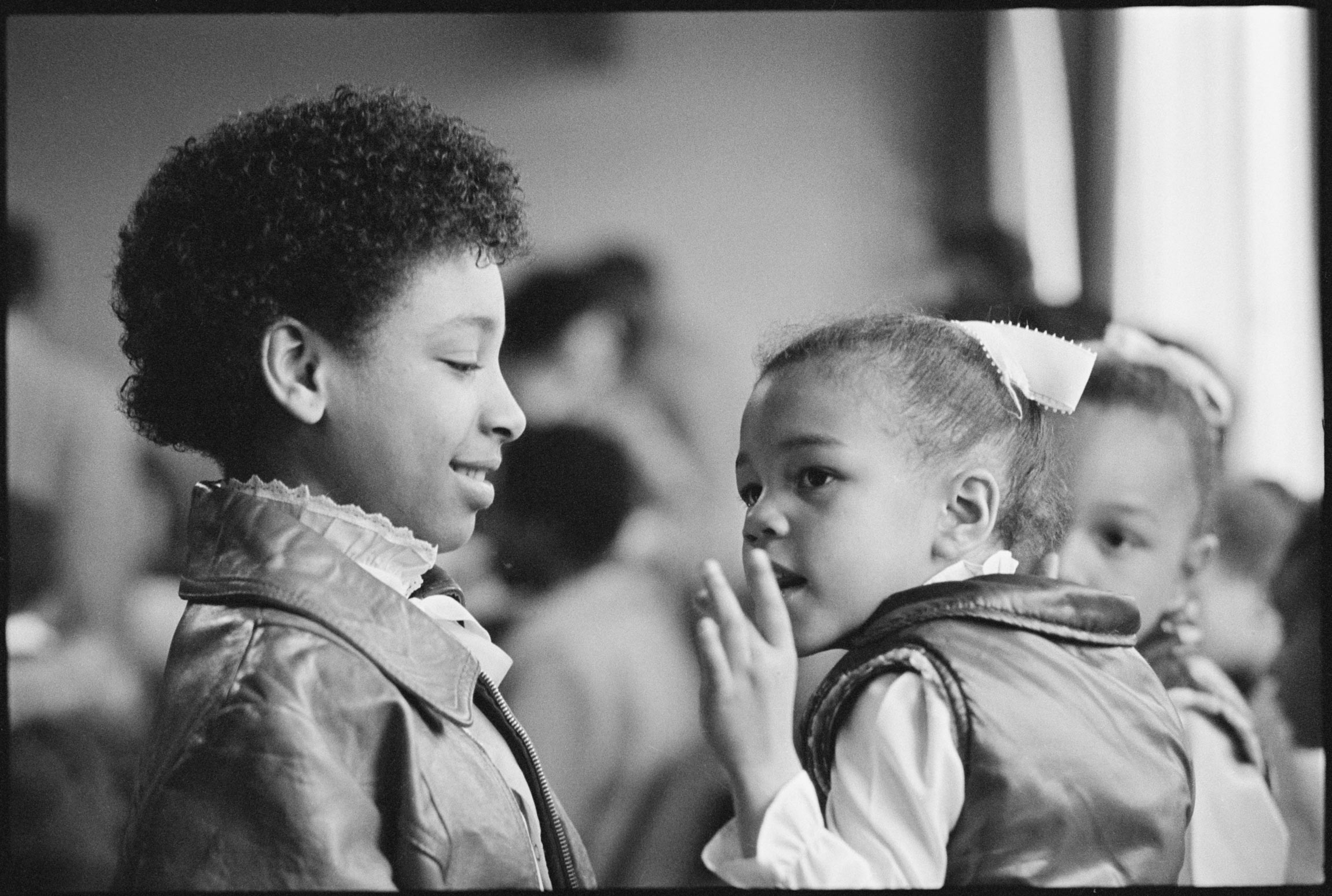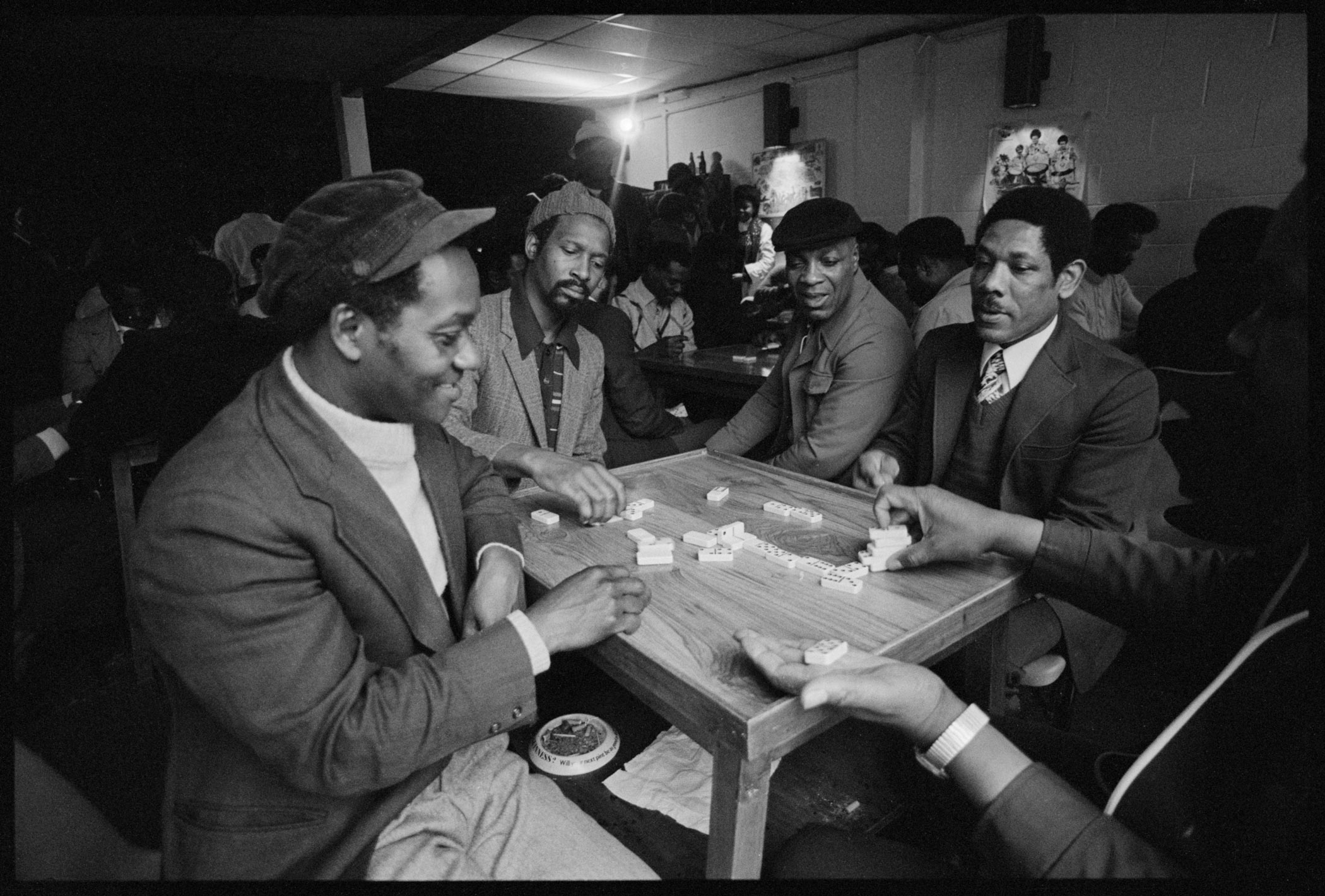 Shot on black and white 35mm film, the photographs record multiple generations, playing dominoes, listening to and watching a steel pan band, and chatting amongst themselves at the Centre. Some of the photographs capture more intimate moments – glances and conversations between young musicians, the rough and tumble of children play-fighting and interactions between the younger and older generations.