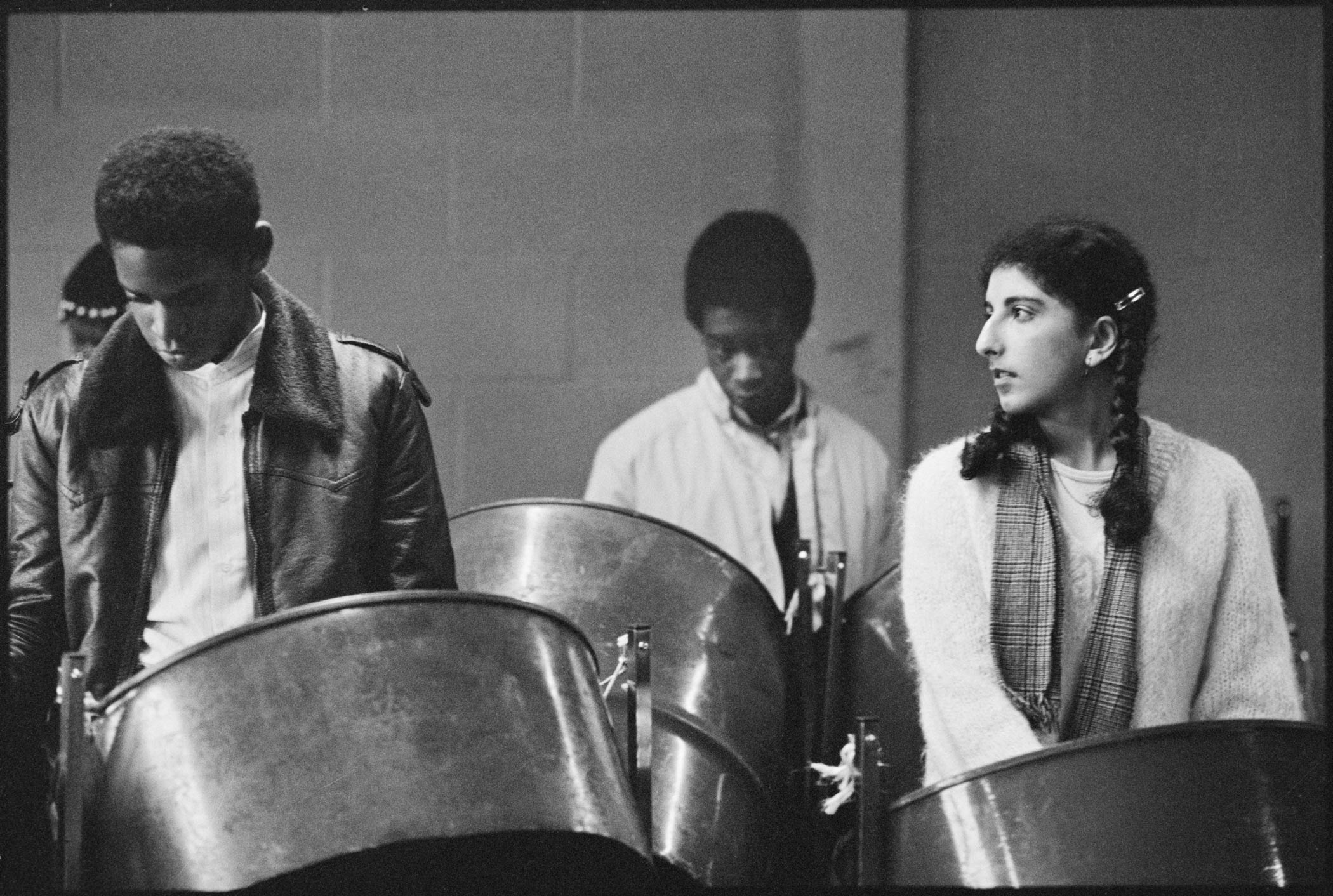 DF: So one of the people watching the then--- the young teenage boy in the baseball cap is--- I'm pretty certain is Melvins Acres [5.37]. Melvin is now the leader of the New World Steel Orchestra, which wasn't founded until the following year after these photos were taken, which makes me believe that the steel band in these photos is the Paradise Steel Band. Paradise Steel Band was founded by St. Clair Morris [5.59] , in the early 70s. I think about 1972, somewhere around there. And Melvin was a member of that band before he co-founded New World Steel Orchestra in 1984. So I'm pretty certain the steel band is Paradise Steel Band.