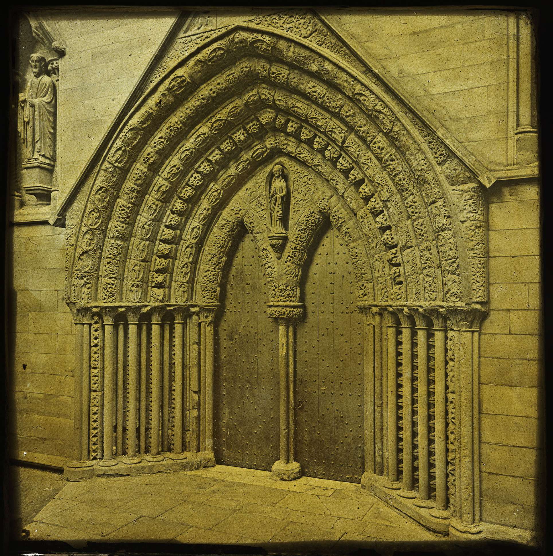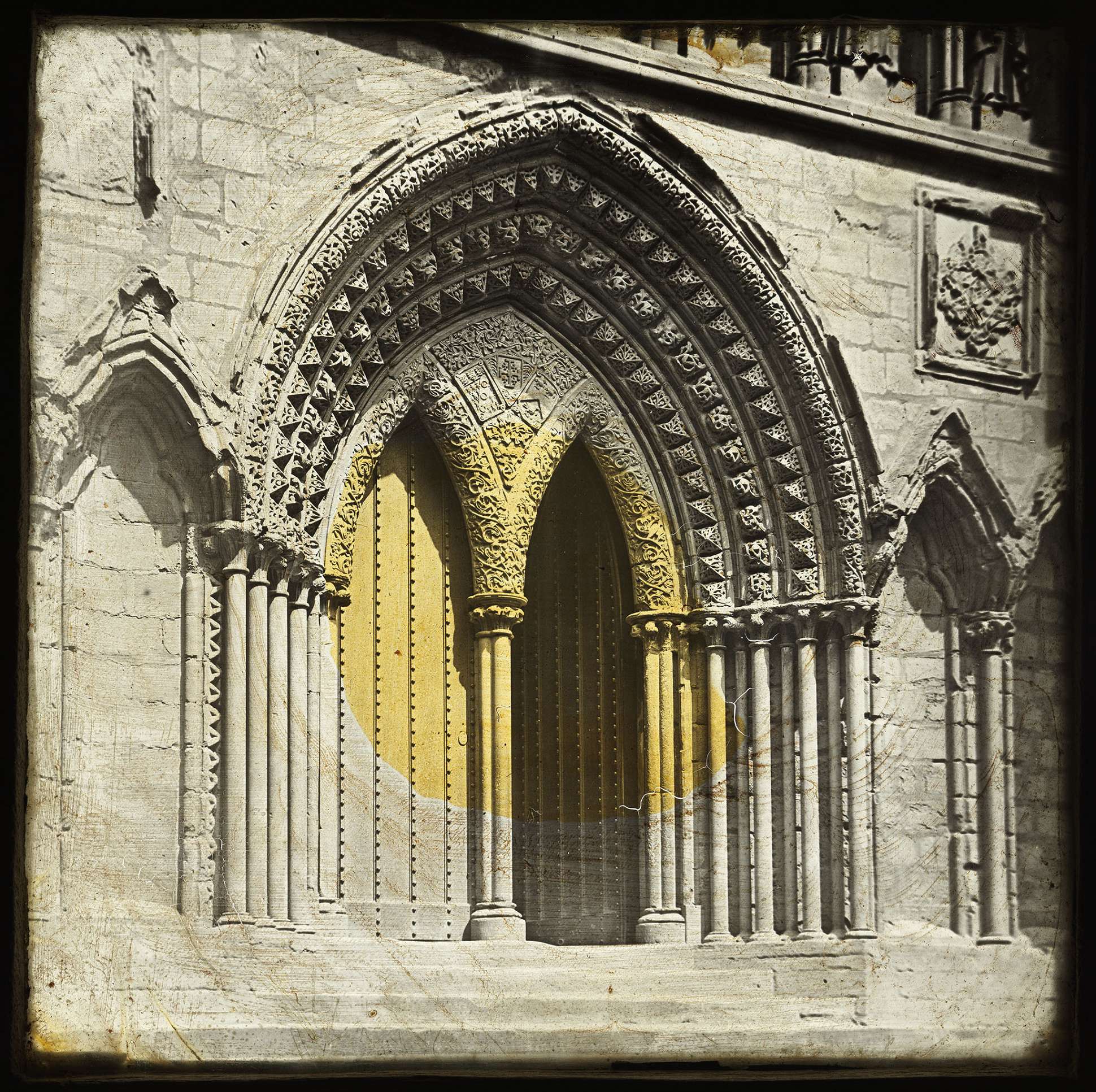This set of lantern slides are dated 1869, and were probably produced to coincide with the Gilbert Scott restoration of the cathedral. The magic lantern show may even have been used to promote his restoration work. Most of the slides were hand coloured (an expensive process) and in most cases the colours survive very well.