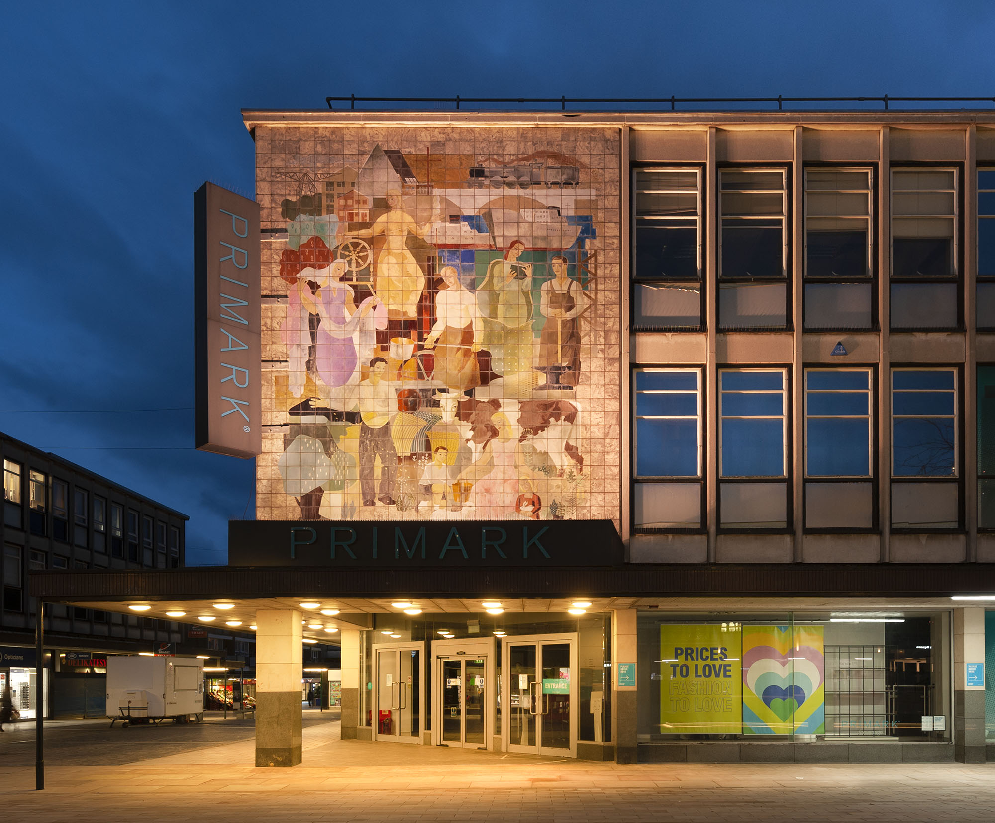 The shopping precinct, with surrounding car parks and bus station, was built first, begun in earnest in 1956 and officially opened in April 1959. Its design is notable: the fully pedestrian precinct is one of the earliest examples of this kind of development in Britain and on a scale unequalled in Europe at the time of its initiation. The shopping precinct, designated as a conservation area in 1988, is notable for its uniformity, integrity and level of survival. Provision was also made in the town centre for offices, community, entertainment and public buildings, which will be discussed in this book, along with expansion works undertaken in the 1960s and ‘70s.