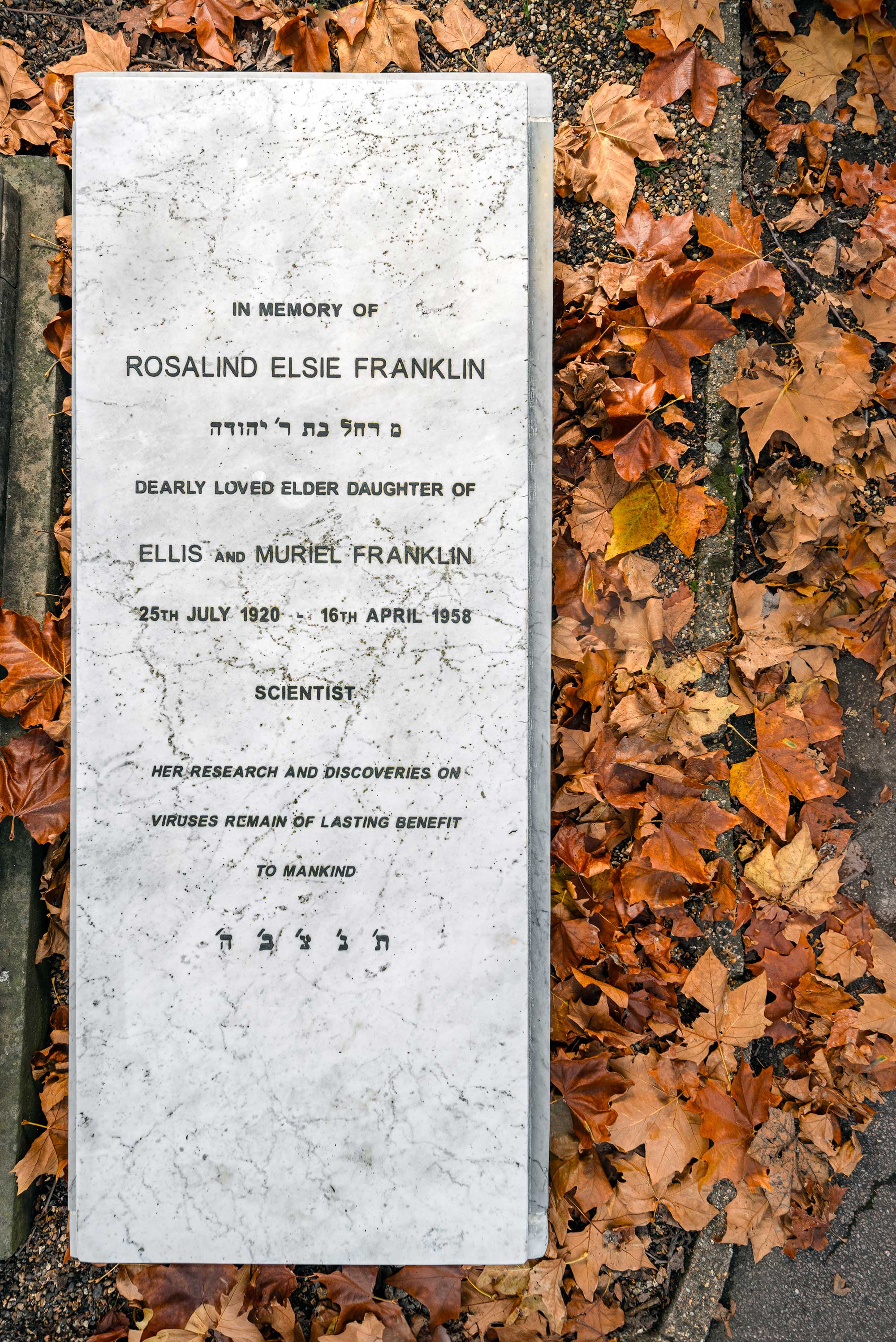The Tomb of Rosalind Franklin (1958, Grade II) at Willesden Jewish Cemetery is a simple marble tablet, in keeping with Jewish funerary tradition. Listed for its special historic interest as a memorial to her important scientific contributions, the interest of the tomb is linked to the simplicity of the design, acting as a marker for Franklin’s Jewish heritage.