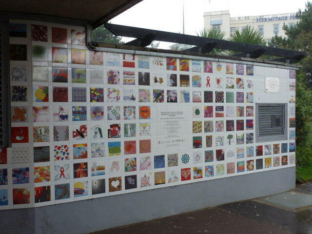 There are a number of monuments to those who have lived with HIV/AIDS in England. The Brighton and Hove AIDS Memorial was unveiled in New Steine Gardens, Brighton in 2009. The sculpture ‘Tay’, by Romany Mark Bruce, shows intertwined figures that form a shadow in the shape of a red ribbon, the HIV/AIDS awareness symbol. The Dorset AIDS Memorial at Pier Approach, Bournemouth commemorates 400 local people who lived with HIV/AIDS, each of whom are represented by an individual tile.