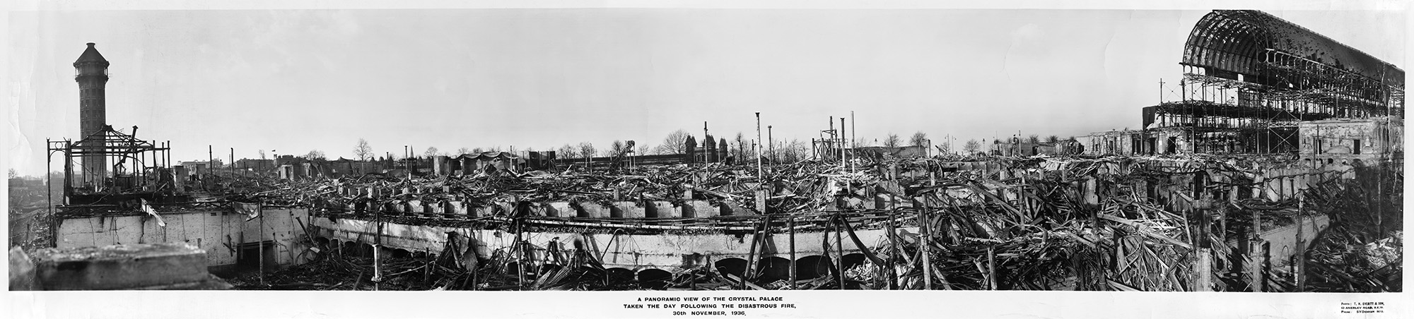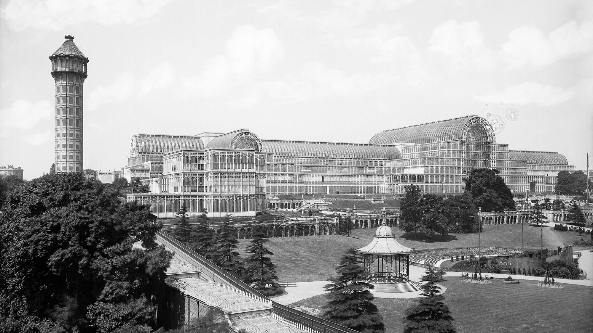 The original Crystal Palace, designed by Joseph Paxton, was built to host the Great Exhibition of 1851 – a vast international showcase of the applied arts in Hyde Park. After the exhibition closed, the enormous structure was dismantled and rebuilt in South London. It reopened in 1854 as an even larger building surrounded by grand landscaped pleasure grounds on the slopes of Sydenham Hill.