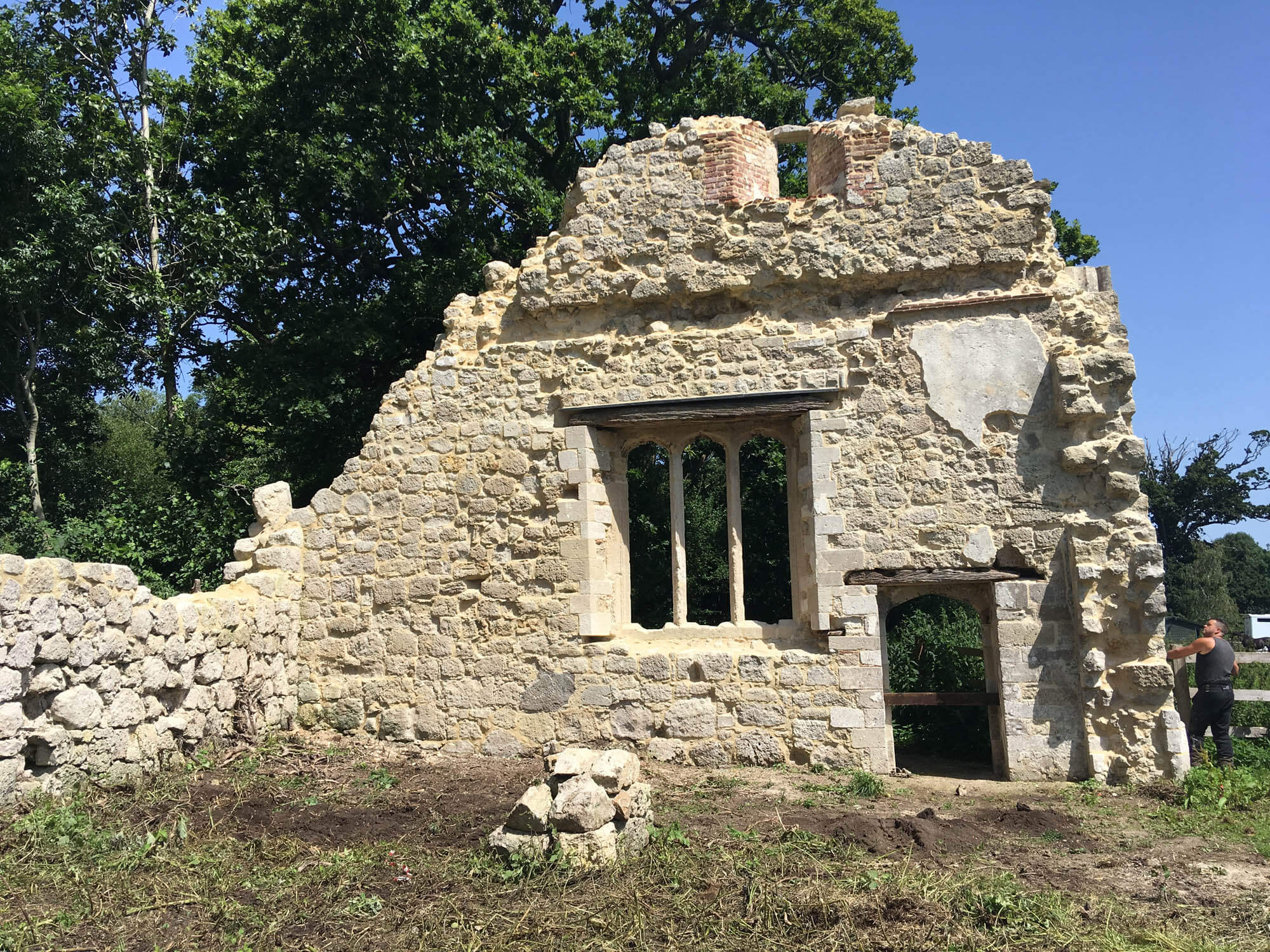 The Society for the Protection of Ancient Buildings (SPAB) bought the building in November last year and is working with Historic England and others to bring it back to life. Known as their ‘Old House Project,’ SPAB’s aim is to showcase the very best conservation methods and materials to repair this medieval building. Over the summer, there was a working party held at Boxley Abbey and a lime kiln was set up in the grounds of St Andrew’s for the production of ‘hot lime’.