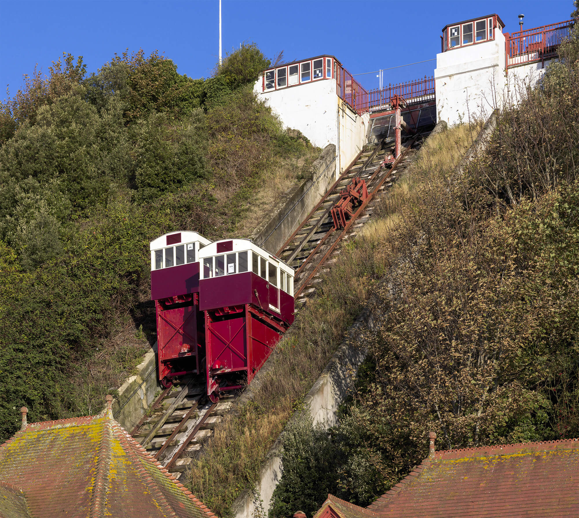 The Grade II* listed Leas Lift is a very rare cliff funicular railway built in 1885 to transport people between The Leas promenade and the beach and seafront. It is one of only three remaining water-balanced lifts in the UK but closed in January 2017 due to safety issues with the braking system. Since then, the buildings, tracks and machinery have degraded further.