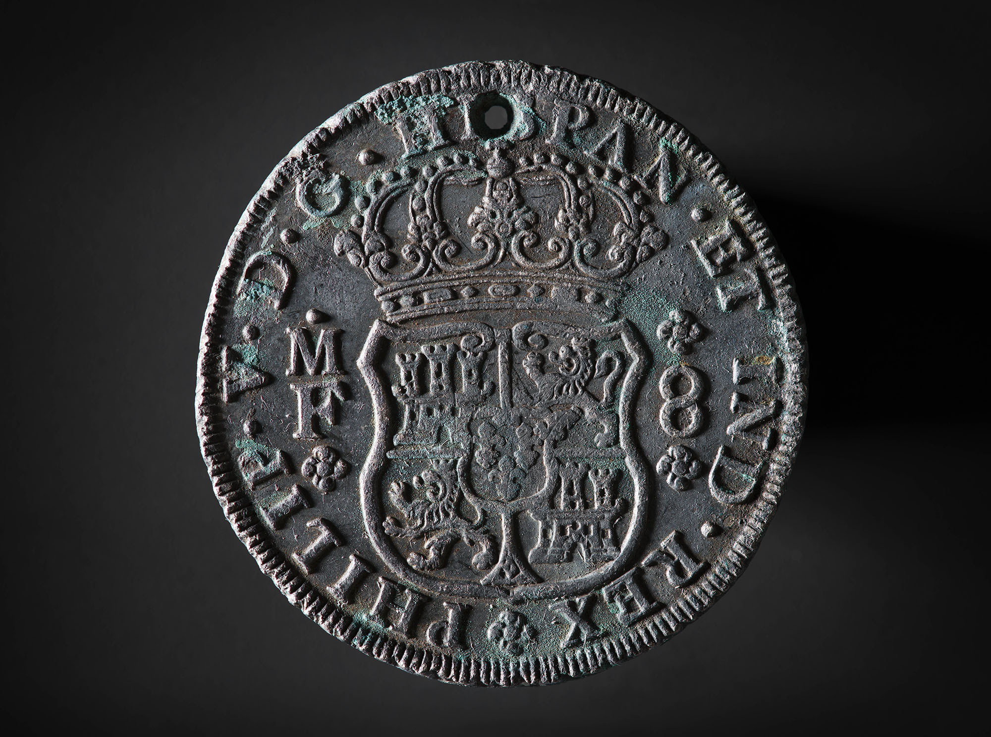 Many of the coins did not originate from the Netherlands; those being officially transported bear the letter ‘M’, meaning they were made at the Mexico City Mint.